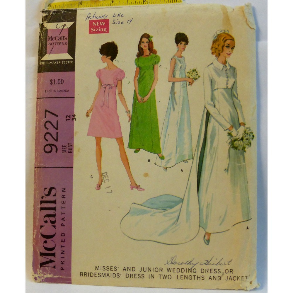 1960s Mccall S 8153 Misses Jewel Neckline Empire Waist Dress Pattern Two Lengths Size 14 Empire Waist Dress Pattern Empire Waist Dress Dress Pattern